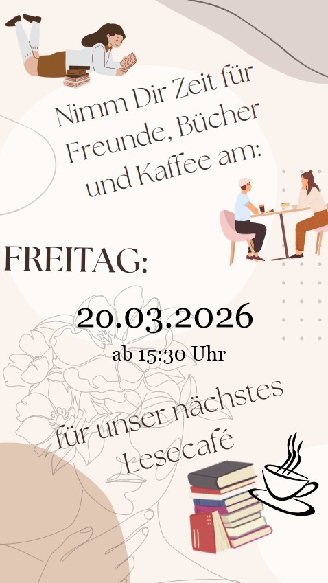 Und wer heute nicht kann, kann sich das Lesecafé vormerken, jeden Freitag nach dem 15. des Monats.
