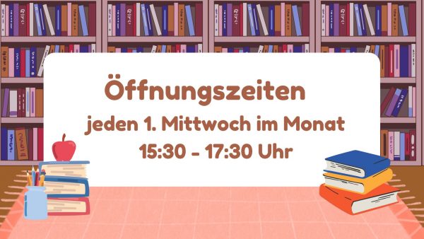Das ist heute, am ersten Mittwoch des Monats, ab 15:30 Uhr möglich: Die Bibliothek ist geöffnet!